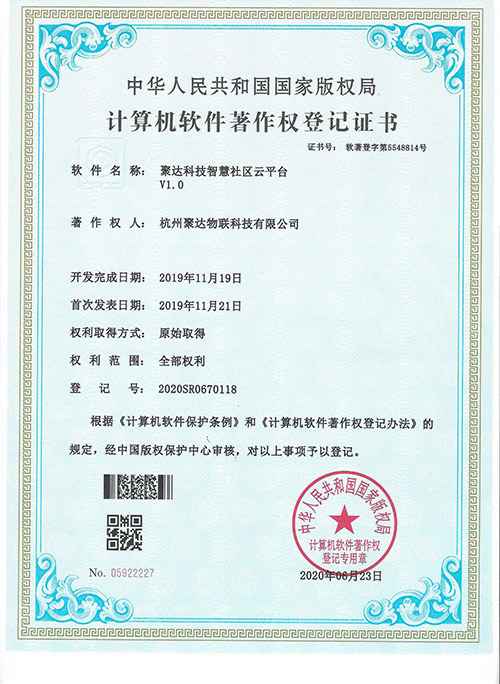 聚達物聯(lián)科技已登記多項計算機軟件著作權(quán),包括物業(yè)管理平臺、智慧消防管理平臺、安防監(jiān)控管理平臺、