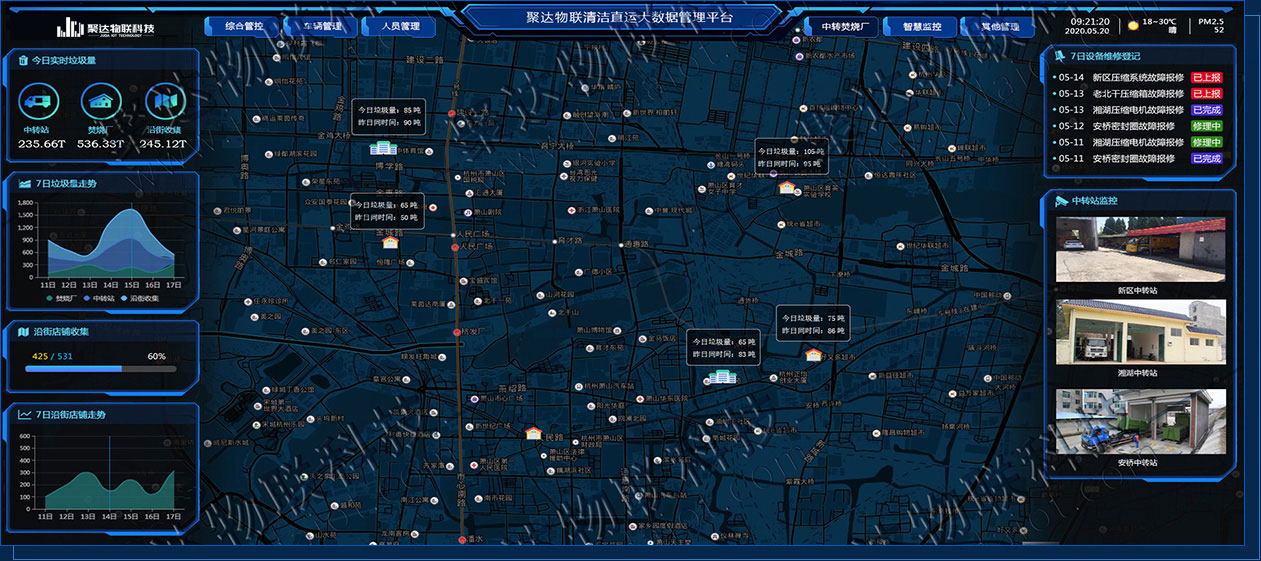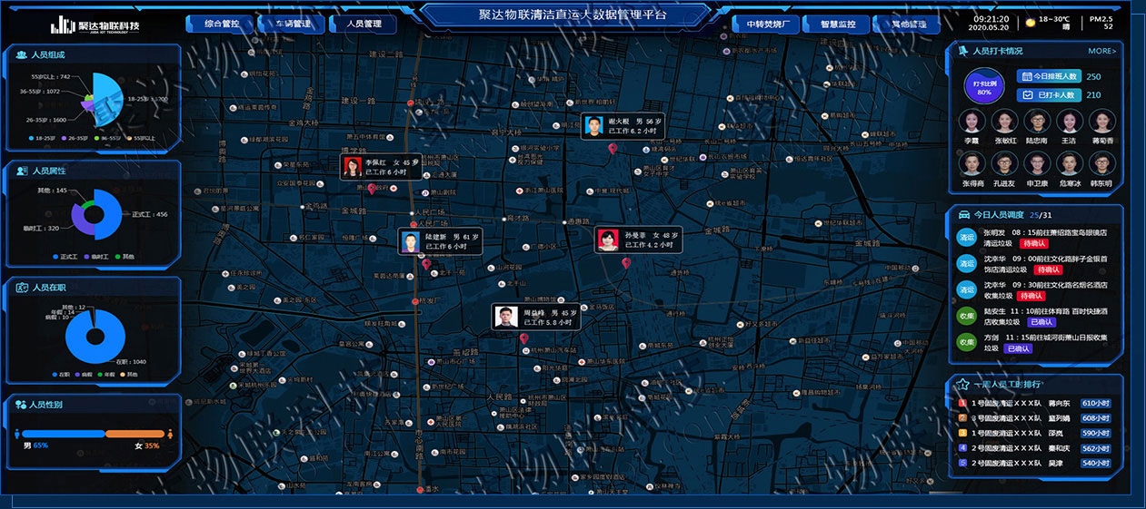 平臺可實現(xiàn)物業(yè)對小區(qū)內(nèi)人員、車輛、設(shè)備的統(tǒng)一信息化管理。通過上傳物業(yè)工作安排,系統(tǒng)會自動分析保安打卡次數(shù)和時間,以餅圖、線圖等直觀的方式展示每日完成情況,還原保安巡更路線。